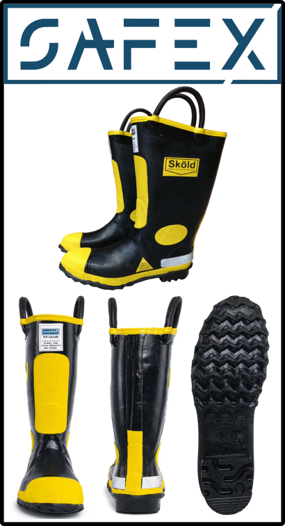 Elaboradas de caucho vulcanizado, con puntera y entresuela de acero, ofrecen protección para el combate de incendios estructurales. Además, están fabricadas bajo los requerimientos de la Norma NTC 1741. Bota en caucho para uso industrial. Antecedentes BSI 5145.